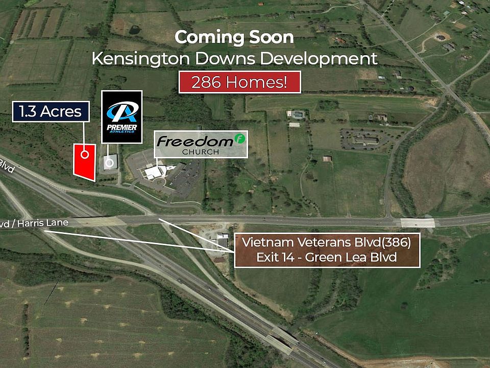 1.3 Acres off Green Lea Blvd, now a 4-lane road. Adjacent to Kensington Downs Residential Development, which will consist of 286 Homes on 71.63 +/- acres.
