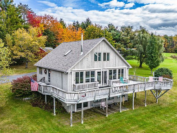 ''CHALET/CAPE WITH PRESIDENTIAL RANGE VIEW & GUEST APARTMENT'' Enjoy sunsets and mountain views from the large wrap-around deck in this open concept home situated on 2.76 acres. First floor features great room with large open kitchen, center island, Vermont Casting wood stove, bedroom and laundry/pantry. Master Bedroom and half bath on second floor private loft. Additional living space with full kitchen, center island, bedroom and bath in the bright walk out basement area, used as guest or in-law apartment. Open floor plan with ample space for gathering and entertaining. Over sized 32'X28' detached, two car, full dormered garage with usable space above. Wonderful year round or vacation home with views of Presidential mountain range just 40 minutes from Sunday River and close to some of the best skiing in the East. Abundant snowmobile, ATV trails, swimming, fishing and boating at the ''exclusive town only'' Pismo Beach on Thompson Lake. Enjoy a day of swimming, boating and then plan a night out at the Oxford Casino just a few miles away. Several golf courses in the area, including the Historic Poland Springs Golf Course.