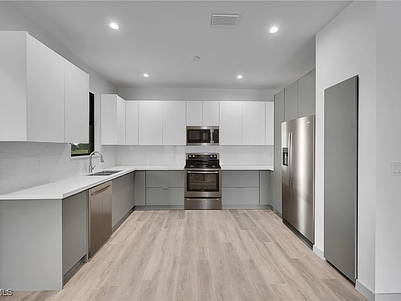 Step inside to discover high ceilings, elegant wood-look flooring, and abundant natural light throughout. The gourmet kitchen boasts sleek two-tone cabinetry, quartz countertops, stainless steel appliances, and a large open layout ideal for entertaining. The primary suite includes a walk-in closet and a spa-like bathroom with dual vanities and a glass-enclosed shower.