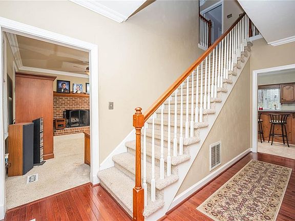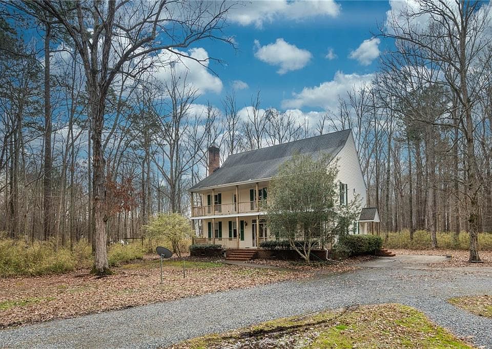 Welcome Home! This Hickory double decker Colonial has limitless opportunities! Home is situated on over 6 acres with tree lined driveway leading back to your peaceful oasis. Home is stately with a detached two car garage designed with garage doors hidden to give a carriage house appearance. Foyer leads to great room plentiful in size with wood burning FP. Kitchen is spacious and cozy with secondary decorative fireplace with eat-in kitchen. First floor also features a bonus room perfect for formal dining, office, or a 5th bedroom. Second floor features large primary suite with WIC and large bathroom. Access to second floor deck off primary suite as well as one of the secondary bedrooms. Two other secondary bedrooms and spacious hall bath complete this ideal layout. Detached garage is massive with office/work space inside as well as second floor. Call today!