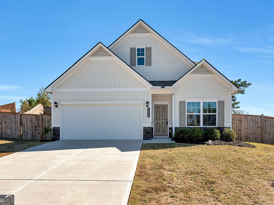 LIKE-NEW HOME, built in 2023, in PRIME BETHLEHEM LOCATION! 3 Bedroom, 2.5 Bath with primary bedroom on main, open kitchen/family room layout! 2 bedrooms upstairs plus a huge loft with endless potential. Kitchen features granite counters, large peninsula bar top and stainless appliances. No carpet on main level. Primary bath features oversized tile shower with large walk in closet and double sink vanity. Enjoy the covered back porch and fenced backyard! Convenient access to Hwy 316, schools, and shopping. Move-in ready!