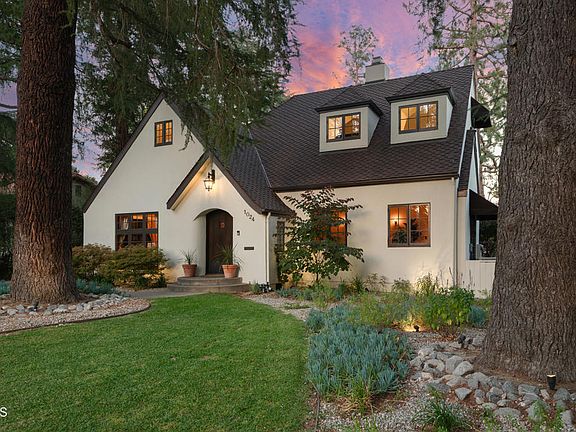 Nestled in the heart of the esteemed Prospect Park National Register Historic District, 1024 Prospect Boulevard is a skillfully renovated and thoughtfully expanded English Revival residence that blends architectural heritage with contemporary sophistication. Cradled by a majestic canopy of mature camphor and cedar trees, this distinguished neighborhood offers immediate access to Brookside Park, Kidspace Museum, the Rose Bowl, the Chandler School, and the vibrant amenities of Old Pasadena.Originally constructed in 1924, this gracious 4-bedroom, 4.5-bathroom home has been meticulously reimagined to suit modern living while honoring its storied past. The welcoming entry hall gracefully separates a dramatic living room--complete with a barrel-vaulted ceiling and wood-burning fireplace--from the formal dining room, creating a perfect flow for casual or formal entertaining.The expansive chef's kitchen is a true centerpiece, featuring professional-grade stainless steel appliances, a generous center island, and a charming breakfast area. Adjacent to the kitchen, an enviable family room opens to a beautifully landscaped, predominantly flat backyard with a flagstone patio, built-in barbecue, and a detached two-car garage.A first-floor ensuite bedroom, private home office, powder room, and a dedicated laundry room complete the main level. Upstairs, three ensuite bedrooms include a luxurious primary suite with serene garden views and a private sun deck overlooking the grounds, with peekaboo views of the San Gabriel Mountains. A bonus loft--perfect as a second office, playroom, or creative studio--sits tucked beneath the center ridgeline, offering treetop vistas to the west.This exceptional property combines historic charm with modern amenities, including multiple skylights, upgraded systems, and lush, manicured landscaping. Rarely does a home of this quality and character become available in such a sought-after enclave of West Pasadena.