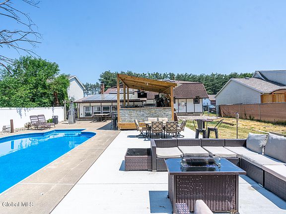 Completely renovated and designed with entertaining in mind! Located in the Schalmont school district, this large 7 bed, 3.5 home has a band new furnace, central air, driveway, and much more. Featuring an island equipped with a second sink, granite countertops and convenient pot filler, the kitchen has it all. With an open concept layout and stunning wood-burning stove, the great room serves as the heart of the home. Outside, your own private oasis awaits with an inground pool, outdoor kitchen/bar, gas fireplace, wood firepit, and hot tub. The finished basement with full bath and kitchen would make a great in-law, perfect for multigenerational living. Don't miss out on the opportunity to own this entertainer's paradise situated in the highly sought-after Antonia Hills neighborhood!