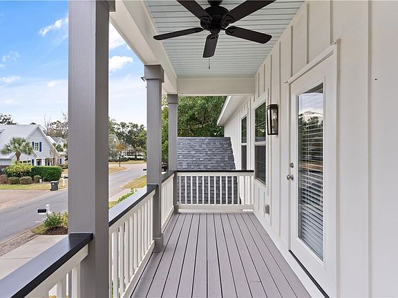 Fall in love w/this like-new, former model home w/all the bells & whistles! "The Richardson" is an adorable cottage-style two story w/French doors, shiplap, oversized ceramic tiles, granite/marble counters, & much more! Landscaped lawn has palms & plantings to delight w/fully fenced backyard. The many outdoor options include large private patio, possible room for a pool, and at this price, add a screened porch! Home is wired for speakers inside & out! Guest room w/private bath easily serves as downstairs guest/owners suite. Love sittin' porches? This home has two! Upstairs porch opens to a large loft that could be media room, office, second living area, your choice! Huge upstairs owners’ suite includes impressive walk-in closets; incredible views to a natural area w/live oaks dripping in Spanish Moss; cathedral ceilings, sitting area...everything you could ever want including a modern spa bathroom. Streets are curbed, guttered and gated. Home is vacant & ready for new owners! Buy today - move in next week!