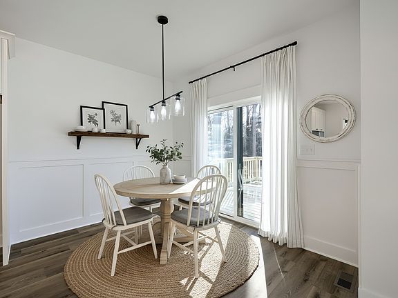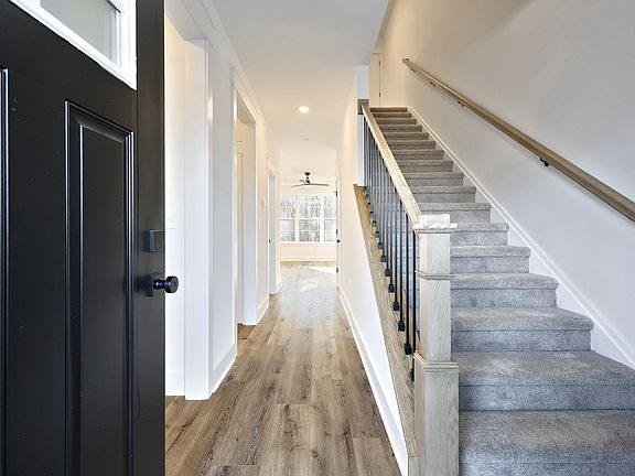 The first floor offers a bright, open-concept layout with quartz countertops, tile backsplash, soft-close cabinetry, and a beautiful kitchen island with breakfast bar. The kitchen includes stainless steel appliances such as a side-by-side refrigerator, gas stove, above-range microwave, dishwasher, and garbage disposal, along with a walk-in pantry for extra storage. A spacious mudroom with a large closet connects the living area to the garage. Also on the first floor is a half bath, a bonus room perfect for an office, and a private rear deck with wooded views, ideal for relaxing or entertaining.