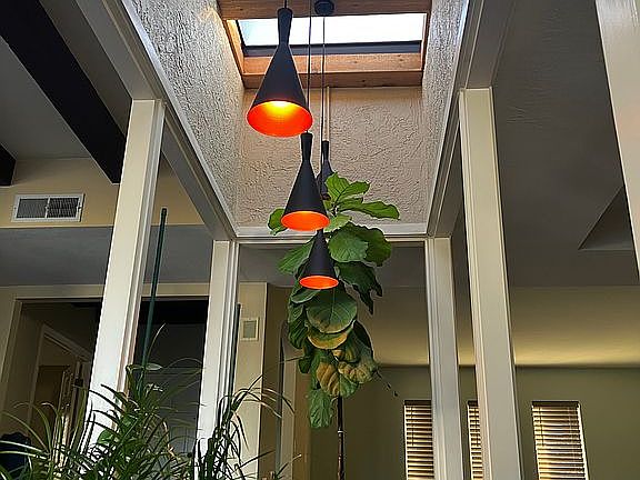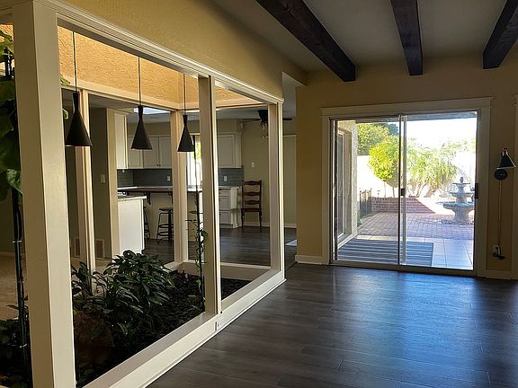 Oversized rv garageLarge updated kitchenNew carpetClassic beamed ceilingUnique patio homeQuartz countertopsLush backyard