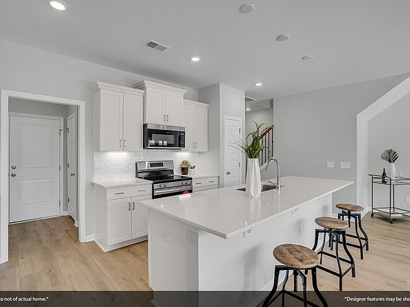 Step into the inviting Mandevilla home, where modern comfort meets thoughtful design with nine-foot ceilings on both floors. The primary suite boasts a ten-foot boxed ceiling, a five-foot tiled shower, dual vanity, and a private water closet for a spa-like retreat. The cozy electric fireplace in the family room adds warmth and charm, while the loft features a stylish window seat, creating the perfect nook for relaxation. Practical touches like cabinets over the washer and dryer offer added convenience. Situated on a homesite backing up to a decorative pond, trees, and walking trails, this home offers both scenic views and a serene setting. Design selections are still available?secure your opportunity to personalize this home at an upcoming design appointment!