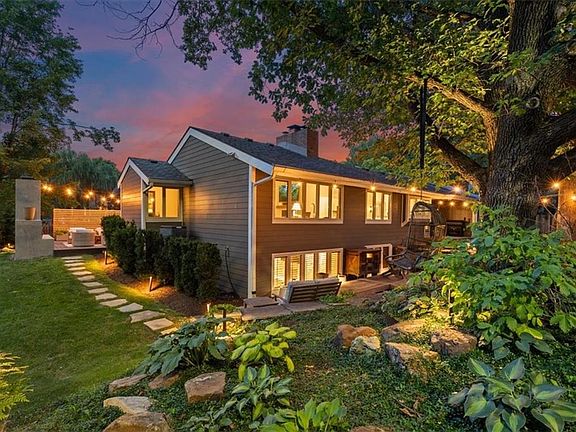 Walk to Roe Park, Meadowbrook, Mission Farms, Tavern and Rye! Unique California modern with a Boho vibe in a fabulous close in location! From the sound of the two-story tranquil waterfall that you can view from both levels of the home to the multiple outdoor entertaining spaces, you will never want to leave. Home is situated back with privacy and perfectly updated for today's buyer. Convenient main level living with beautiful hardwood floors, tall ceilings and nothing to do but enjoy! Owner has spared no expense updating indoor and outdoor lighting, remodeling bathrooms & kitchen, adding architectural wood touches, updating the primary fireplace, adding landscape, outdoor fireplace with no maintenance composite deck, modern metal staircase and so much more. Exterior low maintenance James Hardie Siding, newer Pella windows and gutter guards. Gourmet kitchen with Sub Zero refrigerator, gas stove, butlers pantry with prep sink, additional pantry and 3 ovens total. Huge circle drive for extra parking and culdesac street! Large master with sitting area, mirrored bathrooms, 4 closets, heated towel bars and shower with double heads. Upstairs and downstairs laundry convenient for owner and guests. If you are looking for something one of a kind, you will want to see this house!! Garage is extra deep and floor just recently epoxied. Tons of storage in lower level in addition to a 4th bedroom, wet bar, living room and a huge stone wood burning fireplace. Every bedroom has its own ensuite. 3 large bedrooms on the main level can be used for a office, guest suite or whatever you like. Newer windows, James Hardie siding, windows added to allow in natural light to enjoy the outdoors. Large private yard. Brazilian wood deck along waterfall and spectacular deck with wood burning fireplace are highlights of this home from the minute you walk in the door. Drive to Corinth and Prairie Village Shops within minutes. Check out the Virtual Tour!