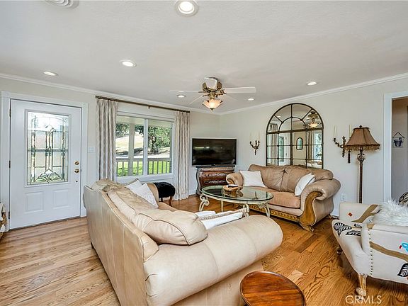 First time on the market in 40 years! This beautifully appointed ranch is just under 5 acres and has everything you need. Covered wrap around front porch leads you into this darling home. This home is filled with custom Hunter Douglas window coverings and crown molding throughout. Enter to a beautifully appointed living room with open floor plan, hardwood floors, recessed lighting and built in cabinets. The recently remodeled kitchen with hardwood floors, custom cabinetry with pullout spice cabinets on either side of the range, granite countertops, antiqued mirror backsplash, a one touch faucet and the custom cabinet front refrigerator brings this kitchen to the next level! Venture down the hall to find a newly remodeled guest bath with shiplap walls and a clawfoot free standing tub. In the large primary suite you will find a walk-in closet, a large primary bathroom with walk-in shower and dual sink vanity and a slider with a powered outdoor sunscreen that leads to the back deck. Just off the back deck is an adorable sunroom with 2 sets of french doors. a wall of windows overlooking the back property and offers additional room for entertaining and guests. Low maintenance backyard complete with irrigation is fully fenced and takes you to your private office located adjacent to the garage. The office has it's own entrance and boasts a plethora of cabinetry and shelves. Would also be perfect for the hobbyist or art studio. There is a three car garage as well as an additional space for all your storage needs/mancave. There is a large side deck just off the kitchen and has space to park your RV next to it with power/water readily available. There is another good sized storage building as well. Centrally located between Lakeport and Calistoga gives you easy access to wineries and lake activity as well as an easy commute. This rare, peaceful and private setting has plenty of room for additional boat and RV parking. Don't let this one pass you by, it won't last long! Additional parcel included is APN#012-021-170-000