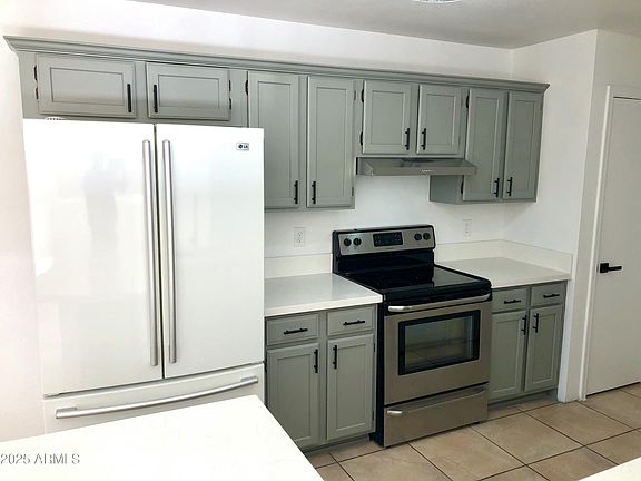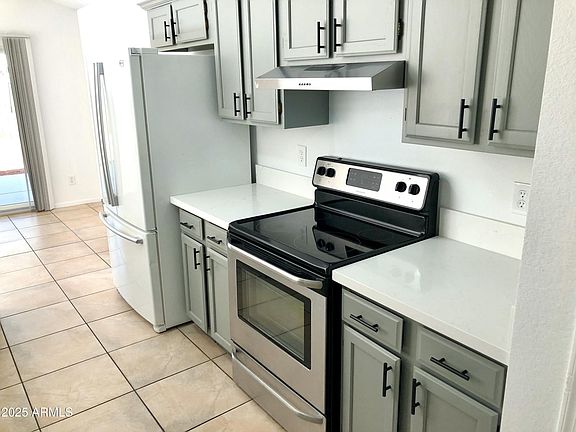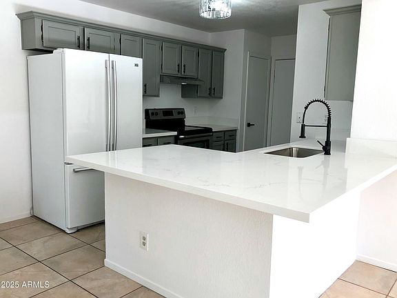 Step into this beautifully updated home with the finest touches 3-bedroom, 2-bath Split Floor plan located bordering a gated community. Hypoallergenic with No Carpet, tile floors throughout. Conveniently located to the 101 and the Cardinal Stadium with a plethora of dining choices and outlet malls. The open floor plan flows seamlessly into the kitchen, complete with quartz countertops, stainless steel appliances, and stylish cabinetry. The Garage is a dream come true for your tailgating dreams with plenty of space and a meticulously maintained Epoxy Floor. The spacious primary suite offers a private sliding door to the backyard, a walk-in closet, and a modern ensuite bathroom with dual sinks for added convenience. Tile floors run throughout the home, making it both stylish and easy to maintain. Enjoy your mornings or evenings on the covered patio in the low-maintenance backyard. Updates include a new water heater, updated appliances, newer AC & Roof, and more. Ready for immediate move in.