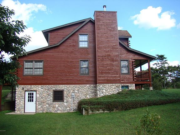Here is a rare opportunity to own your private paradise. Escape the world & enjoy a secluded, costume built log home nestled in the midst of an old vineyard surrounded by woods. Great views out every window. Seller custom built this home in 1996 on 20 acres that they divided up into 4 separate parcels. You can keep all 20 acres or easily sell off the separate lots and just keep the 4 1/2 acres that the house and 960 SF pole barn sits. Enjoy afternoons sitting on the long front porch or evenings on the back deck. The walk out basement has a bedroom, full bath, wet bar with dorm fridge,& built-in microwave that is perfect for entertaining or as guest quarters. Mowed trails throughout the property are waiting for you to come and explore while snacking on freshly picked blueberries from your own bushes.Marvel in the spring your bosoms of the many Dogwood,Red Buds,CrabApple trees.The amenities of this home are too many to list, so come on out & experience in person this incredible estate.
