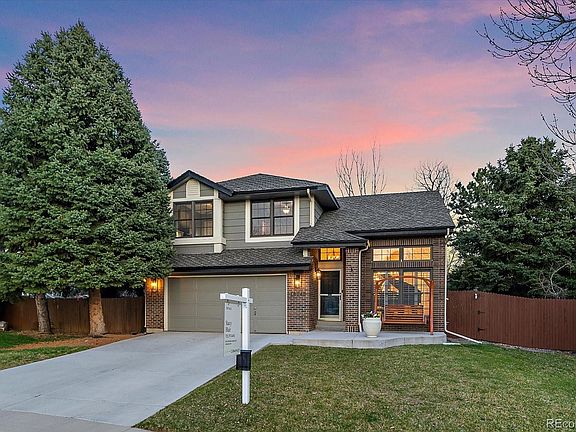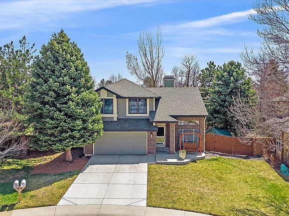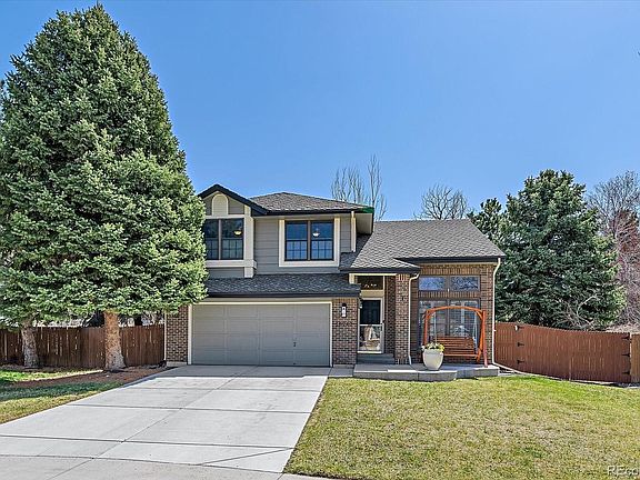 Situated at the back of a quiet cul-de-sac on nearly a quarter-acre lot, this South Stonegate stunner beams with pride of ownership and shows like a model home. Upon arrival, you’re greeted by impeccable curb appeal, a contemporary color scheme, and a new driveway. Inside, gleaming hardwood floors, tasteful statement lighting, and vaulted ceilings with high archways create a striking first impression that’ll have you ready to build your guest list! All main-level windows feature elegant plantation shutters. The great room windows and both sliding glass doors were replaced in 2023. The kitchen was fully remodeled just a few years ago with KitchenAid stainless appliances, a large farmhouse sink, quartz countertops, soft-close cabinetry and drawers, and double pantries. Good news for cooks—a gas line was added, and a sleek new KitchenAid range/oven now anchors this beautiful, functional kitchen. Upstairs, the primary suite offers great natural light, high ceilings, a spa-like bath with a large walk-in shower (new glass in 2023), and a walk-in closet with a custom closet storage system. Two freshly painted secondary bedrooms and a recently remodeled full bath complete the upper level. The finished basement provides extra space to fit your lifestyle—the family/bonus room is perfect for movies, games, exercise, or crafts. Two additional bedrooms with great natural light and a 3/4 bath round out the lower level. The backyard is a private oasis with mature trees, thoughtful landscaping, and a fire pit for unforgettable evenings. Front and back patios were replaced in 2020. The greenhouse, play structure, and zip line will stay with the home. Just a short walk to the park, elementary school, and South Stonegate pool! Easy access to shopping, restaurants, I-25, and E-470. Seller is offering a two-year Fidelity Home Warranty Enhanced plan. This home has been meticulously cared for—and it shows! Book your showing today!