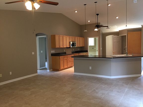 Spacious 4 bedroom home in SW Ocala. Located on a cul-de-sac offering a large backyard for family enjoyment, half an acre!! Tile flooring, carpet in bedrooms. Split bedroom plan, cathedral ceilings, large rooms! Master bedroom with 10x11 flex area. Master bath features oversize shower and two sinks. Private water closet (toilet). Great kitchen with pantry closet, plenty of counter space and storage plus breakfast bar. Updated Stainless appliance package. Casual dining area overlooks lanai. Formal dining room for special gatherings. Large Indoor laundry with sink. The garage is oversize--24 x 29 plus has a sink. Covered porch at front entry. This is truly a gem waiting for you!