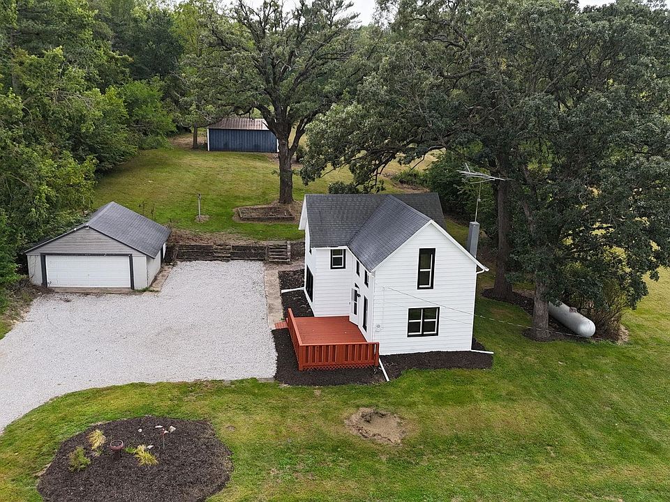 Welcome to this beautifully refinished farmhouse set on nearly 3 acres, offering the perfect blend of charm, space, and modern updates. The home features a spacious living room filled with natural light, a dedicated dining room for gatherings, and an eat-in kitchen designed for both everyday living and entertaining. The main level also offers a large bathroom while upstairs features 3 spacious bedrooms. Outside, the property is just as impressive with a 2-stall detached garage plus an additional storage garage at the back of the property—ideal for hobbies, equipment, or extra space. Whether you’re dreaming of gardening, enjoying the open land, or simply soaking in the peaceful setting, this property delivers.