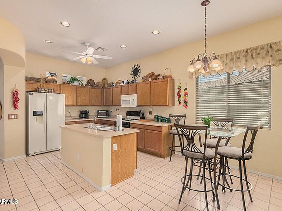 Welcome to Estrella Mountain Ranch! This move-in-ready spacious single-story home features 4 bedrooms, 2 baths, and versatile living areas including a family room, living room, and dining space. The kitchen offers a center island and all appliances. Enjoy a water filtration system, two new A/C units (Sept & Oct 2024), wiring for sound throughout, a large indoor storage room, mature landscaping, and a backyard with an extended covered patio, built-in BBQ, and RV gate. A great opportunity for first-time buyers in a desirable area, seller concessions available!