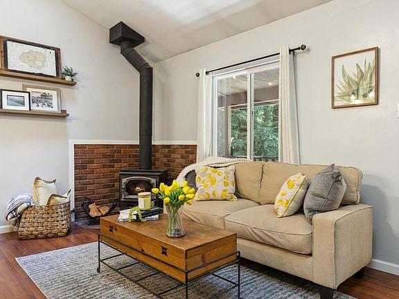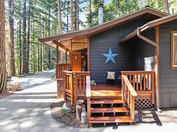 Discover the rustic charm & modern comfort at 10243 East Zayante Rd, nestled in the majestic redwoods of Felton. This 2-bed, 1.5 -bath home sits on a picturesque 15k+ sq ft lot spread across three parcels. Step onto the inviting front porch & imagine yourself unwinding amoungst the redwoods. The charming front porch beckoning you to sit & soak in the peaceful surroundings.