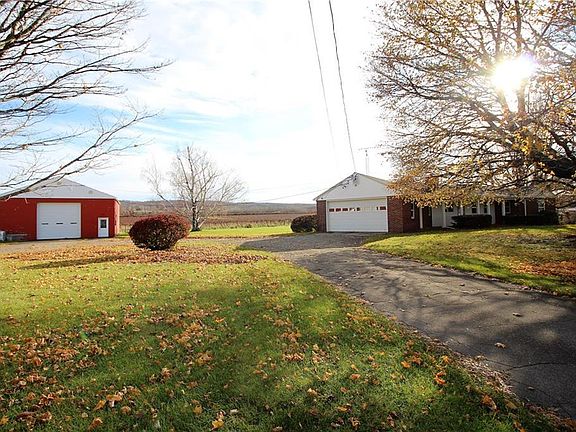 Well built single story brick ranch located on approximately 1 acre. Featuring 4 bedrooms, 1.5 baths, spacious living room and dining room overlooking grape vineyards. 4th bedroom has 1/2 bath and could be used as an office or den. Beautiful hardwood floors in two of the bedrooms, dining room and living room! Huge dry basement with plenty of space for a play room, storage, office or family room. Large mudroom/laundry room located right off attached 2 car garage. Turn around drive with lots of extra parking, 40 x 48 Cement block building with 12 ft roll up door, great for workshop or auto mechanic shop. Central heat, newer roof, gutters and windows. Solid home just waiting for your personal touch!