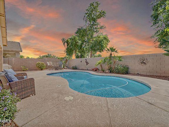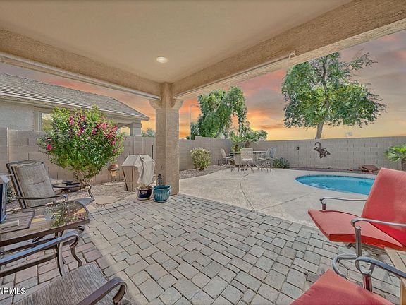 Great location within the neighborhood for this well maintained, very clean home which offers comfort and plenty of space. Convenient to walking and bike paths as well as nearby shopping. Paver driveway and landscaping adds nice curb appeal. Mountain views, patio and pool in the backyard makes for your own relaxing desert oasis. The home offers great space in the kitchen and living areas for entertaining and hosting gatherings. A new HVAC system installed May of 2025. The Garage has easy access to large attic storage.