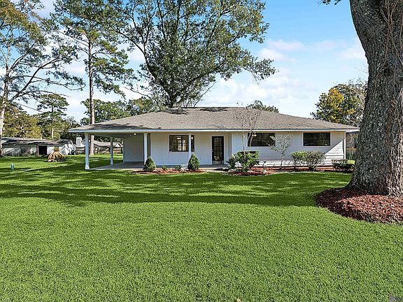 Welcome to this completely renovated 3-bedroom home nestled on a 0.37-acre rural tract in Denham Springs, surrounded by mature shade trees and beautiful landscaping. The home boasts a wide front porch, white wood siding, and a covered carport. Inside, you’ll find a semi-open floor plan that exudes a clean, crisp atmosphere, featuring bright interiors, beautiful laminated wood flooring, and recessed lighting. The kitchen features white cabinetry, a stylish subway tile backsplash, an electric cooktop, stainless steel appliances, and a sleek quartz countertop with a convenient breakfast bar. Just off the kitchen is the formal dining area, highlighted by a beamed ceiling that adds a touch of sophistication. The spacious bedrooms offer ample closet space, and the master suite is designed for comfort, featuring a custom sliding closet door with custom shelving. The master bath offers double vanities and a large, custom tile shower with glass doors for a spa-like experience. Step outside to the open brick-paved patio, perfect for enjoying evenings while taking in views of the expansive backyard. This property is located in Flood Zone X, and has never flooded. This gem won’t last long! Schedule your private showing today.