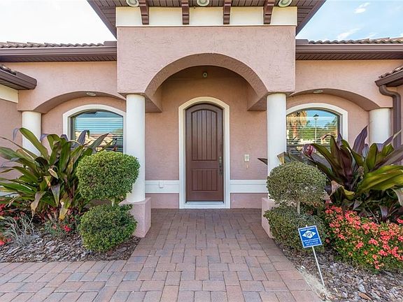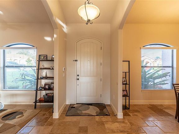 Look no further! This gorgeous home not only has 4 bedrooms, 3 bathrooms and a pool, but it has a separate room entered from the pool deck that could serve as anything you desire - pool cabana, workout room, play room, studio or man cave! Every room in the home features travertine tile, the gourmet kitchen has granite, 42" cabinets with under cabinet lighting, built in stainless steel appliances and breakfast bar. Every bathroom is upgraded and the master bathroom features a large walk-in shower and a jetted tub. The tray ceiling in the master bedroom is lighted for ambiance. Lay by your saltwater, solar heated pool and enjoy the view with no rear neighbors and a pond with a fountain. Look beyond the pond and there is your view of Saw Mill Lake. This home has many more features, some of which are a paver driveway, tile roof, security system, cameras, core fill insulation in the block plus interior wall insulation, central vacuum, tankless hot water heater and upgraded fixtures.