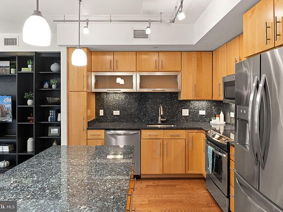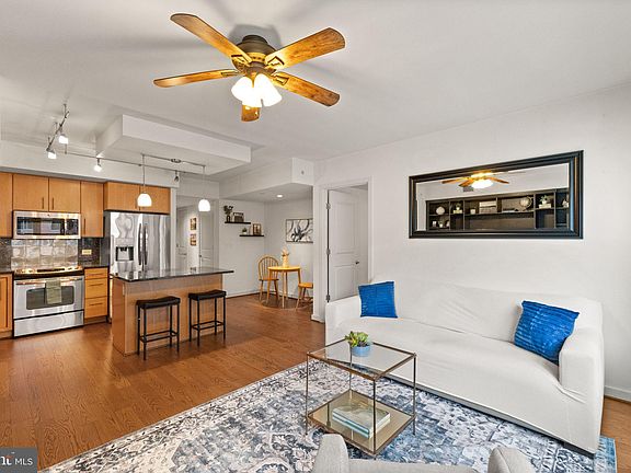 Welcome to The Velocity, where modern living meets Navy Yard convenience. This 1,029-square-foot residence offers one bedroom plus a flexible den and two full baths. The open layout is anchored by a wall of windows providing ample natural light in the the living and dining areas. The kitchen is a cook's delight and features stainless steel appliances, generous work surfaces and storage. There is also an island which can serve as an extra prep area or a place for guests to gather. The primary suite boasts a juliette balcony, generous closet space and an ensuite bath with shower. The versatile den can serve as a home office, guest space or media room, with a second full bath adding flexibility. Recent updates include HVAC (2024), washer (2025), dryer (2023), hardwood flooring (2021), and bedroom carpet (2025) making this home as practical as it is stylish. Residents of the Velocity enjoy a suite of hotel inspired amenities: staffed front desk, rooftop terrace with heated pool, state-of-the-art fitness center, club room with chef’s kitchen, children’s playroom, and a dog wash station. This unit also comes with its own garage parking space. With a Walk Score of 95, you’re steps from Nationals Park, The Wharf, top restaurants, coffee shops, grocery stores, and Navy Yard Metro (Green Line with easy access to Blue, Orange, and Silver). Stylish. Updated. Connected. Welcome home.