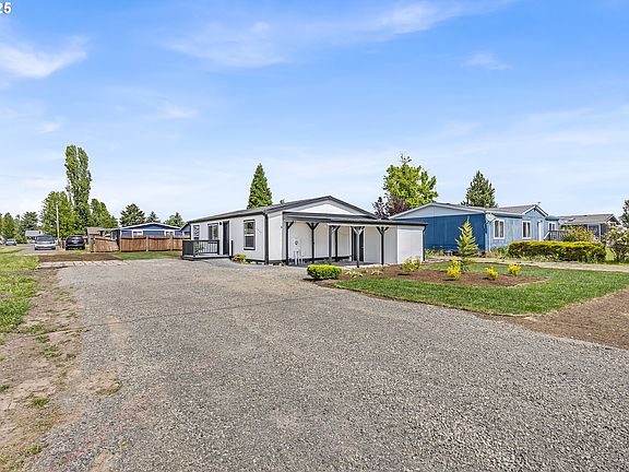 Welcome to this jaw-dropping 3 bed, 2 bath manufactured home offering 1,080sqft of stylish, modern living on its own land—no park or space rent! Located in the quiet, close-knit community of Gervais, Oregon, this fully remodeled home is ready to be enjoyed. Inside, you’ll find a completely open floor plan with a fully updated interior, featuring neutral tones creating a bright, welcoming atmosphere throughout. Brand-new kitchen w/sleek cabinetry, countertops, backsplash & modern stainless steel appliances. Laundry area right off the kitchen. Both bathrooms have been fully renovated, showcasing fresh new vanities, new tubs, & contemporary fixtures. Outside, this property really shines with its large lot offering plenty of extra parking—ideal for RVs, work vehicles, or guests. A dedicated storage shed provides additional space for tools, outdoor gear, or hobby equipment. Conveniently located near Hwy 99 and just minutes from I-5, Gervais offers small-town charm with easy access to surrounding areas like Woodburn, Salem, and Keizer. Enjoy nearby amenities including local parks, schools, shops, restaurants and the popular Woodburn Premium Outlets just a short drive away. Schedule your private tour today!