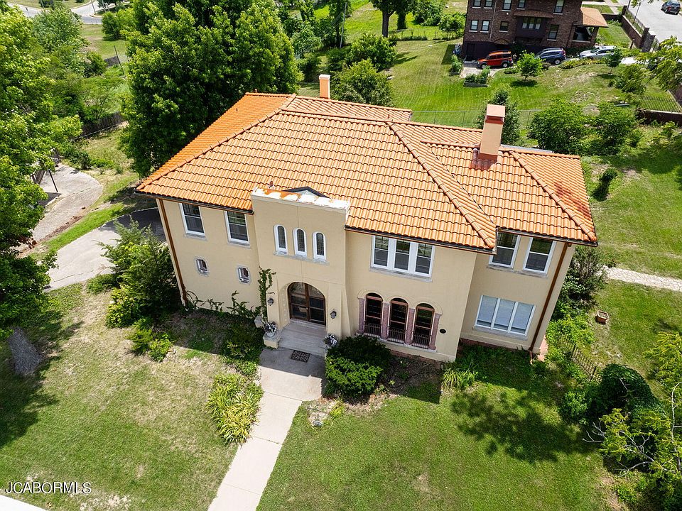 Built in 1925 for John Guy Gibson, 1025 Adams St. is one of the most noted homes in Jefferson City. A true Mediterranean style with its stunning architecture that includes tall arched windows, curved doorways, the smooth stucco finish, and the eye-catching clay tile roof, imported directly from Spain! Enter in the stately arched front doorway to an incredible foyer leading the way to the sunken dining room and living room. The living room still holds the ambiance with large windows that once served a purpose of bringing in the cooler evening draft, a grand fireplace that compliments the architecture, stained glass windows and a wall of built-ins. Adjacent to the living room is the sunroom, enhanced by numerous windows. The gorgeous kitchen recalls memories of times past while beckoning you to create your own. Beautiful wood cabinetry with open glass cabinets, a pantry and an attached breakfast nook featuring several of the older built-in cabinets all complement the style of the home. All this flows seamlessly into the formal dining room. The grand staircase leads to an upper level with 4 bedrooms, 2 full baths, 2nd level sunroom, office and the convenience of a laundry area. All still boasting the beautiful architecture of the woodwork, arches, ample windows, marble, tile and solid surfaces plus amazing closet space for an older home. The Gibson family really did everything perfectly as they thoughtfully planned out this home. Additionally, just off the back of the home, you will discover the charming screened-in porch offering great space for lounging, dining and entertaining, while being surrounded by the lush landscaping, mature trees, vibrant flower beds and tranquil goldfish pond creating the scene for a comfortable retreat.