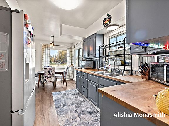 Large fully fenced backyardUpdated bathroomConvenient breezewayWalkout lower levelRefreshed countertopsComfortable main-floor livingThree bedrooms