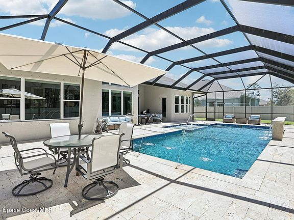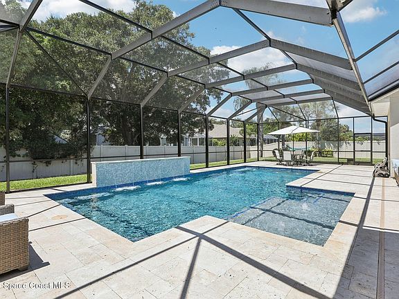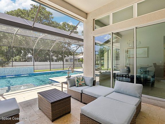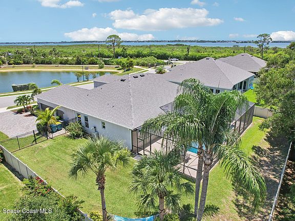 Welcome to your private retreat in the prestigious gated community of Georgiana Reserve on Merritt Island! This exquisite pool home is nestled on a lush, .35-acre lot overlooking a tranquil pond, with no neighbors in front or diagonally, and is just steps from the scenic South Tropical Trail. From the moment you enter through the grand double doors, you're greeted with 12-foot ceilings, 8-foot interior doors, and elegant ceramic tile flooring throughout the main living areas. The thoughtfully designed layout offers space for both formal living and dining areas, a large family room, 3 bedrooms, 3 full bathrooms, plus a dedicated office or study. At the heart of the home is a gourmet kitchen—perfect for any chef—featuring quartz countertops, stainless steel appliances, ample cabinet space, and an abundance of natural light. The split floor plan offers privacy with the luxurious primary suite situated to the left side of the home. The suite boasts double walk-in closets, a freestanding soaking tub, walk-in shower, dual sinks with a separate vanity, and private access to the pool area. Step outside to your backyard oasis featuring a stunning 40-foot saltwater pool with tranquil water features, set within a high-screen enclosure. The expansive travertine tile deck offers the perfect setting for lap swimming or relaxed lounging. Additional highlights include a whole house water filtration system, automated blinds, ceiling fans throughout, a spacious three-car garage with an electric vehicle connection, and community access to two private docksone on the Indian River, ideal for fishing or paddle boarding. Enjoy a prime location between the Indian and Banana Rivers, just 20 minutes to the beach, 24 minutes to Port Canaveral, 25 minutes to fine shopping and dining in Viera, and under an hour to Orlando International Airport. This exceptional home truly offers the best of Florida livingschedule your private showing today!