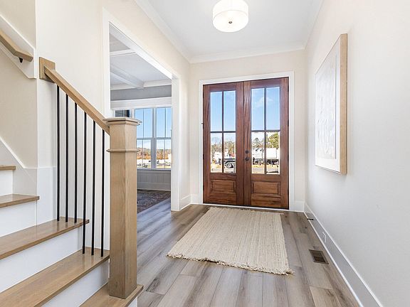 Welcome to this stunning NEW CONSTRUCTION. Featuring four spacious bedrooms, four full baths, and two half baths, this residence is thoughtfully designed for today's lifestyle. The gourmet kitchen is a culinary enthusiast's dream, equipped with stainless steel appliances, a gas cooktop, and a large single-level island. The generous walk-in pantry provides ample storage, making meal prep a breeze. Enjoy memorable meals in the formal dining room, complete with a butler's pantry for added convenience, or unwind in the inviting family room, where a cozy fireplace creates the perfect atmosphere for gathering and relaxation. The first-floor guest suite ensures privacy for visitors, while the second floor showcases a luxurious owner's suite featuring a spa-like bath with a walk-in shower, a soothing soaker tub, and a massive walk-in closet. Two additional bedrooms and a large flex room—ideal for a home office, gym, or play area—offer versatility for your needs. A convenient laundry room on the second floor adds to the home's practicality. Ascend to the finished third floor, complete with a half bath, offering endless possibilities for entertainment or relaxation. Outside, the screened rear porch overlooks 0.69 acres of beautiful private yard. Irrigation System front yard. Conveniently located just 8 minutes from the new 540 Old Stage exit and only 25 minutes from downtown Raleigh, you'll enjoy easy access to city life while benefiting from no city taxes. Don't miss your chance to call this exceptional property home!