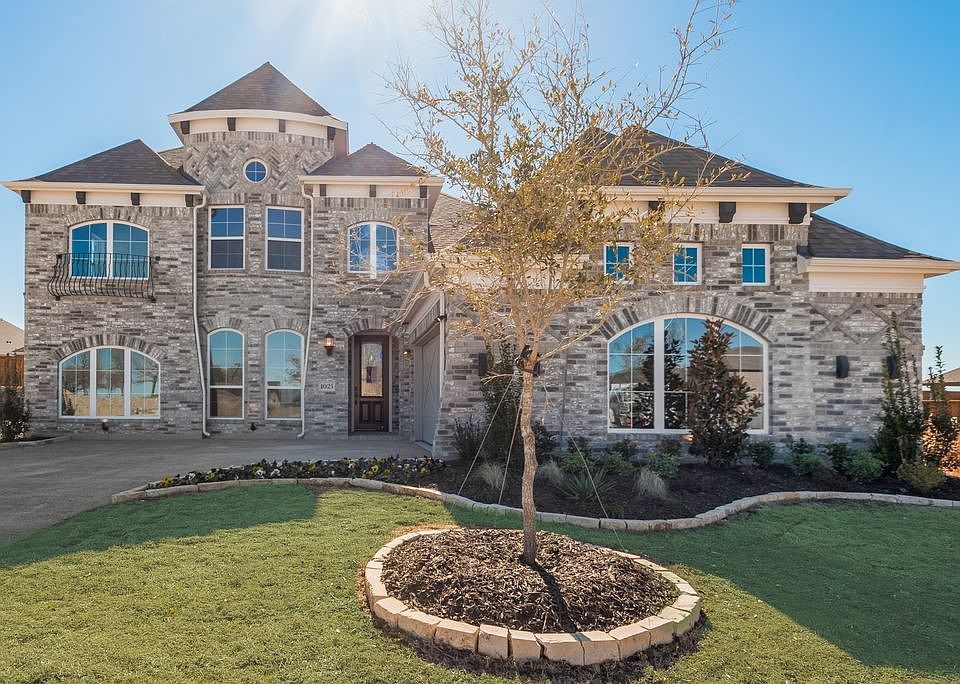New Grand Home in Monterra - Fate's newest master planned neighborhood w swimming pool, splash pad, trails, park & pickleball courts! JUST COMPLETED. Sought after Rockwall schools. Convenient location w lots of shopping & dining options near Lake Ray Hubbard. This home is north facing & only half a block from pool. The Chef's kitchen has Shaker cabinets w spice rack and pots & pans drawers, granite slab countertops, a full bowl sink, stainless steel appliances, 5 burner gas cooktop & large island. The Open concept vaulted family room has wood floors & a gas fireplace. Downstairs Guest Suite. Large Home Office or front Den. Custom features include lots of wood floors through family room, kitchen & dining. Curved staircase has wrought iron balusters, 8 foot doors downstairs w lever hardware, garden tub, glass shower w deco tile, rectangle sinks, flat screen tv wiring & upstairs Game room. Primary Suite plus 2 other bedrooms downstairs. Energy Star Partner w R38 & tankless water heater.