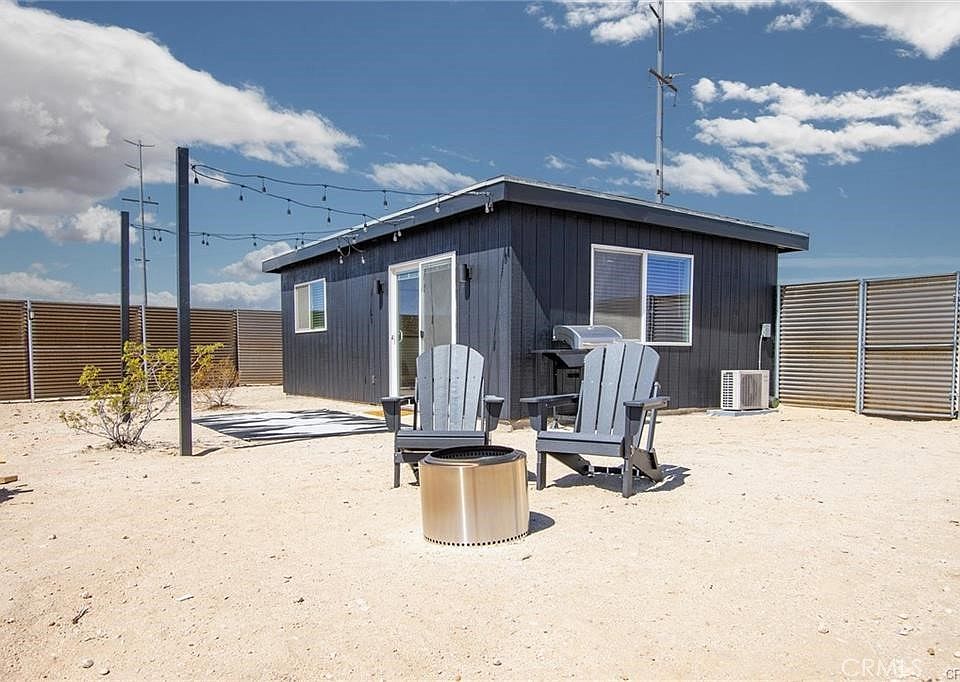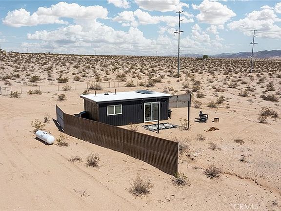 Exquisitely Re-Designed Cabin: Every aspect of this historic Homesteader Cabin has been newly upgraded and updated. Solar-powered & hauled-water – 100% off the grid. Views of entire basin – serene sunrises and sunsets. Rural location, yet only minutes to downtown 29 Palms and its assortment of restaurants. Great weekend getaway. Ductless mini-split for heating/cooling, on-demand water heater, new fridge, new stove – every part of the cabin is new except for the framing – new windows, flooring, exterior siding, roofing, newly built and designed bathroom, bedroom & kitchen – the works! NOTE: this property is zoned Recreational Cabin (not Single Family Residential) and therefore cannot be used as an Airbnb because the County does not permit Rec Cabins as Vacation Rentals. Purchase is Cash Only - no conventional loans - or Seller Carry with following possible terms: $42k Down Payment, remaining $98k principal financed @ 10% and amortized over 30 years at approx $790.00 per month, Balloon Payment Due in 5 years. Text listing agent for map pin to reach property, or use APN: 0633-311-08