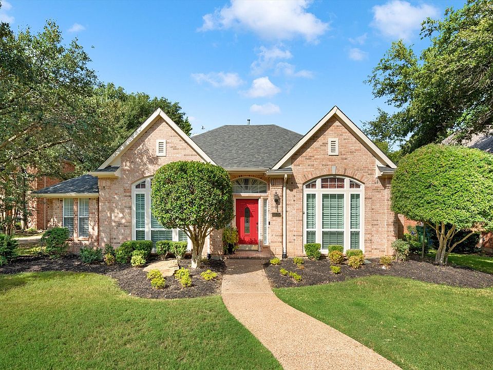 Beautifully updated one story home nestled in the Woodlakes Estates community of Flower Mound, featuring 3 beds, 2 baths, a designated office, & a laundry room with a rinsing sink & space for a freezer or 2nd fridge. This immaculate home showcases English wood floors, modern lighting, surround sound, premium cedar garage doors, & large windows with plantation shutters. Along with a fabulous fireplace & seating area in the primary, you will also enjoy the heated floors, heated towel rack, & claw foot bath tub, in the ensuite. The wonderful eat-in kitchen boasts Granite counters, SS appliances, double ovens for baking, & a new cook top. Outside, a backyard oasis awaits with a spacious deck overlooking the creek & mature landscape. The roof has a class 4 shingle, the guest bath is plumbed for a 2nd sink, & the yard has been equipped with a reliable sprinkler system. Ideal location in proximity to Grapevine Lake, Grapevine Mills Mall, and many dining, shopping, and entertainment options.