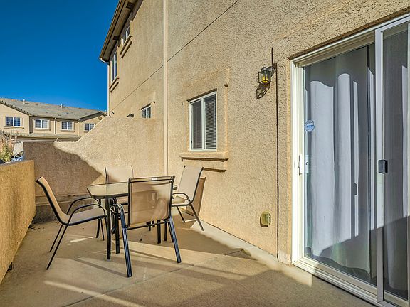 Very nice Townhome just minutes from Ft Carson and Broadmoor Hotel. Stucco exterior with tile roof, enclosed back patio for outdoor entertaining. Great room with fireplace opens to kitchen with island, pantry, and great cupboard and counter space. Sunny dining nook walks out to patio. Main level laundry, washer and dryer available, 1/2 bath with tile floor. Upstairs large master bedroom with vaulted ceilings, adjoining bath with skylight and large walk-in closet. Two more upper bedrooms with vaulted ceilings share another full bath. Central air! Very Nice Complex.