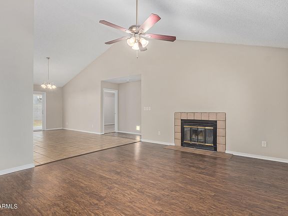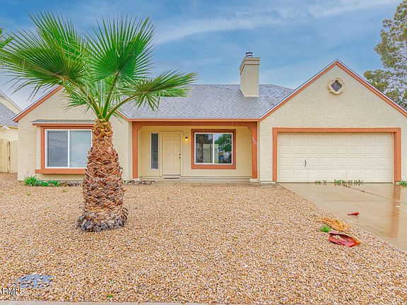 Take a look at this remarkable move-in-ready residence now on the market! This beauty displays a large front yard, a 2-car garage, & a delightful front porch perfect for your morning coffee. Be welcomed by the semi-open floor plan featuring vaulted ceilings, lovely wood-look/tile flooring, a soothing palette, a cozy fireplace & sliding glass doors leading to the backyard. Cooking is a delight in the impeccable kitchen, providing plenty of white cabinets, ample counter space, & a walk-in pantry. The primary bedroom offers a sizable primary closet & a convenient private bathroom. You'll love hosting fun gatherings in the spacious backyard w/a covered patio & an incredible view of the blue skies! Minutes away from shopping spots, schools, & AZ-101. Don't let this one get away!