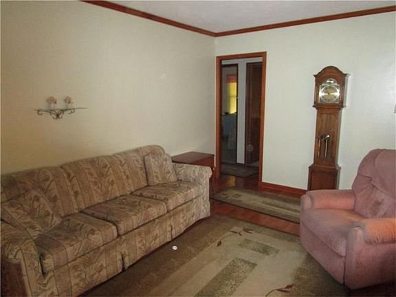Ranch home with beautiful hardwood flooring in living room and hallway. Very well kept home with 2 bedrooms. Spacious family room downstairs which could be used as a 3rd bedroom. There is a full bath in lower level. Updated kitchen and bath with eat in kitchen. All appliances included. Covered front and back porches. Move in ready.