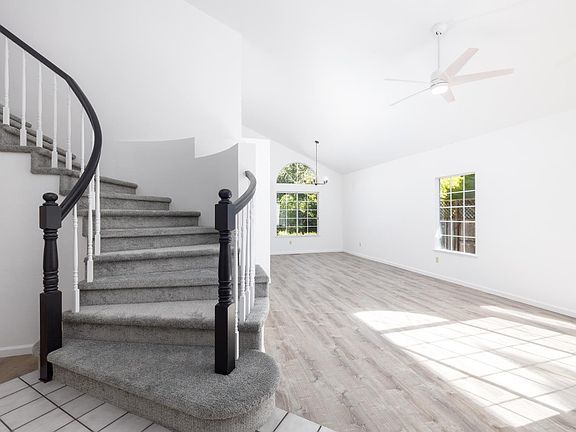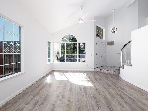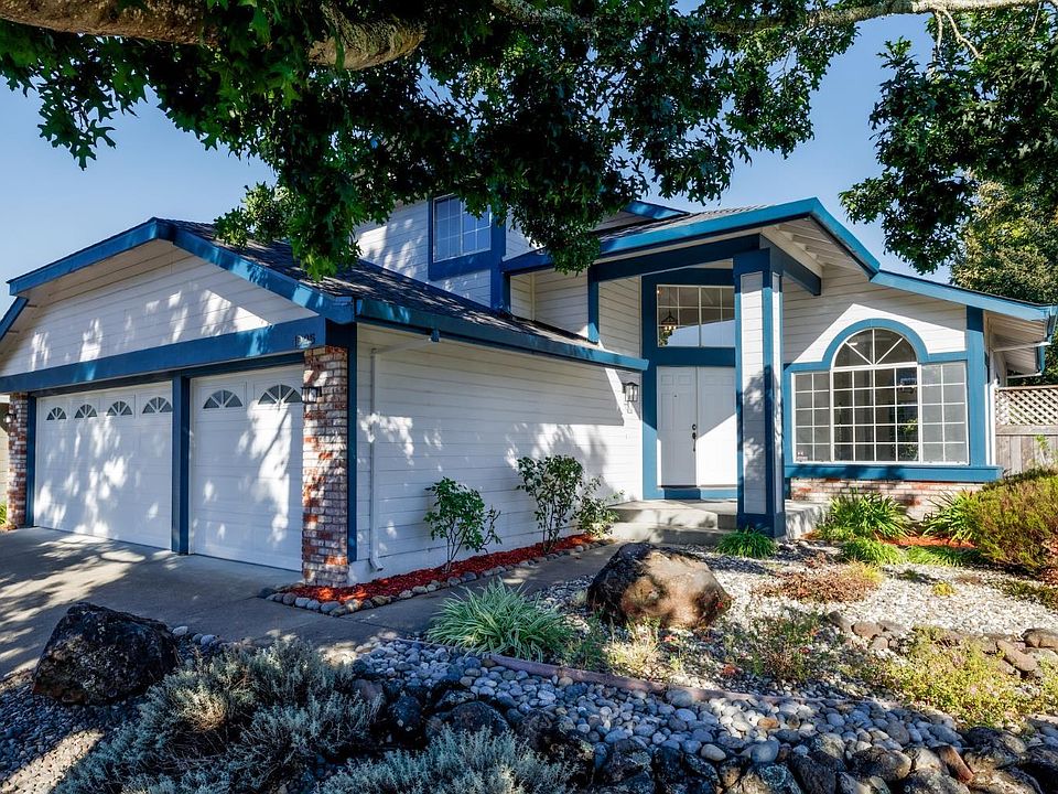 This bright and airy Deer Creek home welcomes you with a formal living and dining area featuring high ceilings and expansive windows that fill the space with natural light. The open floor plan provides inviting areas for entertaining and everyday living, while soaring ceilings enhance the home's sense of grandeur. The main level includes a bedroom and full bath, a spacious laundry room, and a window-lined family room with views of the manicured backyard. The eat-in kitchen offers stainless steel appliances and opens to a cozy family area with a fireplace. Upstairs, you'll find a grand primary suite, two additional bedrooms, and a full guest bath. The home flows to the thoughtfully landscaped backyard, enclosed by wood fencing, with both back and side patios for outdoor dining or relaxation. Extensively updated, the home features new quartz bathroom countertops, fresh paint, upgraded lighting and fixtures, new luxury vinyl plank flooring and carpet, and refreshed cabinetry with new hardware. The three-car garage provides ample space for parking and storage. Conveniently located near Windsor Town Green, parks, schools, restaurants, shopping, Windsor Golf Course, and Sonoma County wine country.