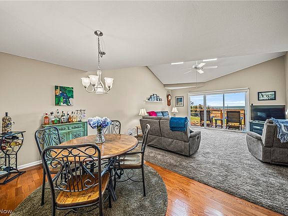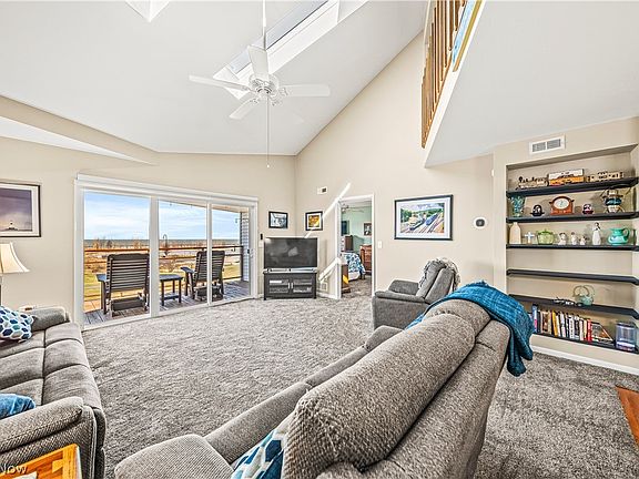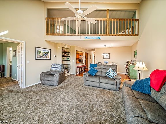Stunning 2-bedroom plus a large loft condo located on the 2nd floor overlooking Beautiful Lake Erie. Nothing to update here- entire unit is tastefully decorated and updated. Living room, dining room, master bedroom and loft all have Lake Erie views. Vaulted living room with book case and sliders that lead to your Lake Erie view balcony. Well appointed kitchen includes solid surface counters, gas stove, garbage disposal, stainless appliances and breakfast bar. Master bedroom has private bath with newer shower and 10 x 6 walk-in closet. 2nd main bedroom has closet and a storage hallway that leads to 10 x 6 storage room over the garage. Upper loft has 3 beds for your guests and a half bath. 1-car detached garage for your car or storage. Loads of updates: 2020-entire interior was painted, new carpeting. 2021- new high efficiency furnace, a/c unit, hot water heater, dishwasher, remote control shade on sliders. 2022-garage door, master bath shower unit, 2nd bath vanity and toilet, 2023- garbage disposal. Lake living at it's best with everything located nearby: restaurants, public dock and boat launch, marina, park, playground, tennis, pickleball and the most gorgeous public beach in Ashtabula Co. Don't blink on this one. She's a beauty! Great for full-time living, weekend get-away or snow bird summer place. Most major furnishings are included with the sale - list is available. I see Lake Erie Sunsets in your Future!!!