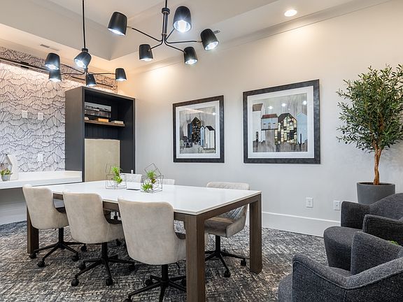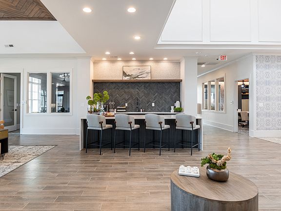 - Exterior features: Built In USB Chargers, Community-Wide Fiber Internet, Coworking Space, Custom Cabinetry, EV Charging Stations, Golf Simulator, Gourmet Kitchen with Tile Backsplash, Keyless Door Entry, Luxury Vinyl Plank Flooring No Carpet, Modern Features and Finishes, Modern Lighting, Monthly Resident Events, Nine Foot Ceilings, Package Receiving, Pet Friendly Community, Pet Washing Station, Picnic Area, Quartz Countertops, Smart Homes, Stainless Steel Appliances, Stainless Steel GE Appliances, Tile Backsplash, Two Bark Parks, Washer/Dryers in Select Apartment Homes, Yoga and Spin Studio