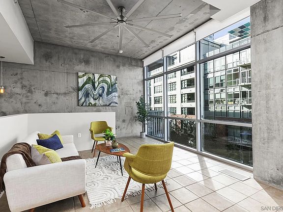 Urban Living at Fahrenheit in the heart of East Village, Downtown San Diego. This modern, two story, industrial style loft features a bright, open floor plan upstairs, with dual masters downstairs. Natural light pours in from the floor to ceiling windows, 11 foot ceilings and exposed, concrete finished walls. Perfect East Village location, conveniently located one block to Petco Park and Fit Athletic Club, steps to the Gaslamp Quarter and endless coffee shops and eateries right out your front door! Freshly painted throughout, with brand new carpeted bedrooms. Other amenities include in-unit washer and dryer, air conditioning and underground parking spot in a secured garage.