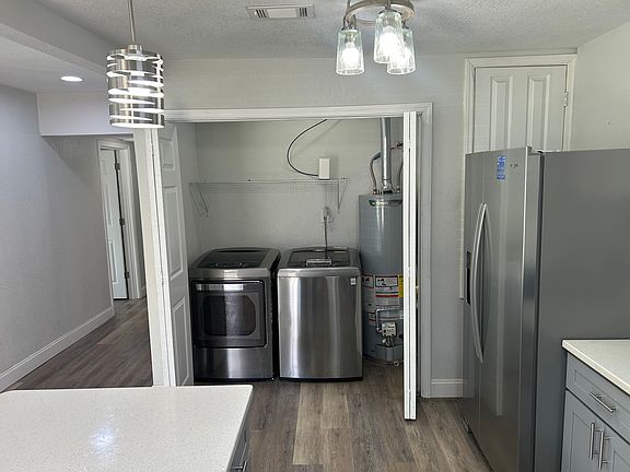 Replaced - roof, insulation, windows, hvac unit, floor, kitchen cabinets, sink and facets, bathroom, toilets, plumbing and wiring, quartz countertops, water heater, all doors and vinyl waterproof flooring, all new appliances, outside and inside paint, laundry room with washer and dryer.