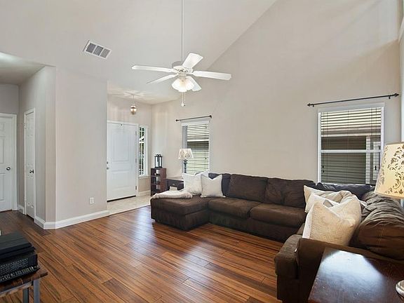Open floor planStainless steel refrigeratorWood laminate flooringCovered and enclosed patioTile floorsUpgraded master bathroomCommunity private pool
