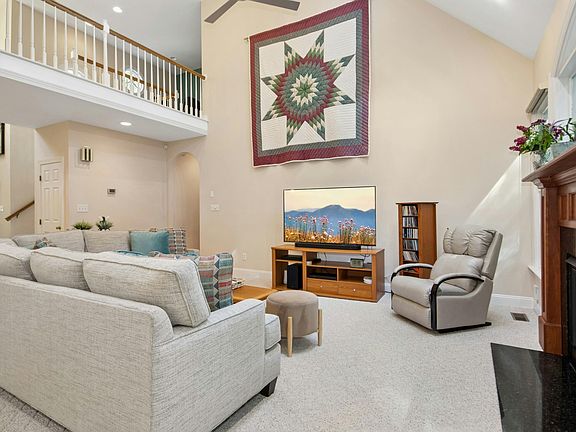 Striking custom, light-filled gem nestled in Apex's desirable Buckingham subdivision! Bright, open floorplan with dramatic 2-story LR affords natural light from skylights & wall of windows. Enjoy cozy evenings by the gas fireplace or entertain in the formal dining room. Granite kitchen with stainless steel appliances, 2022 double oven with convection, breakfast room with bay window, water filtration, cherry island with storage. Main-floor owner's suite with deep trey ceiling offers luxurious retreat, with spa-like bath renovated in 2018, with granite double vanity, tile floor, oversized frameless shower, jetted tub & skylight. Upstairs, you'll find 2 add'l BRs, bonus & versatile loft—perfect for home office—new carpet installed 2024. Ample storage in unfinished walk-in area, pull-down attic & eaves. Lush backyard oasis features expansive garden area with 3-year-old retaining wall & spacious 30x17 deck shaded by motorized retractable awning—ideal for outdoor gatherings. Additional features include upgraded electrical panel with surge protection, EV charging outlet, 2015 roof, solar panels & gutter guards, 2022 water heater, 2021 HVAC, replacement windows, central vac system. A rare opportunity in Buckingham with no HOA—don't miss it!