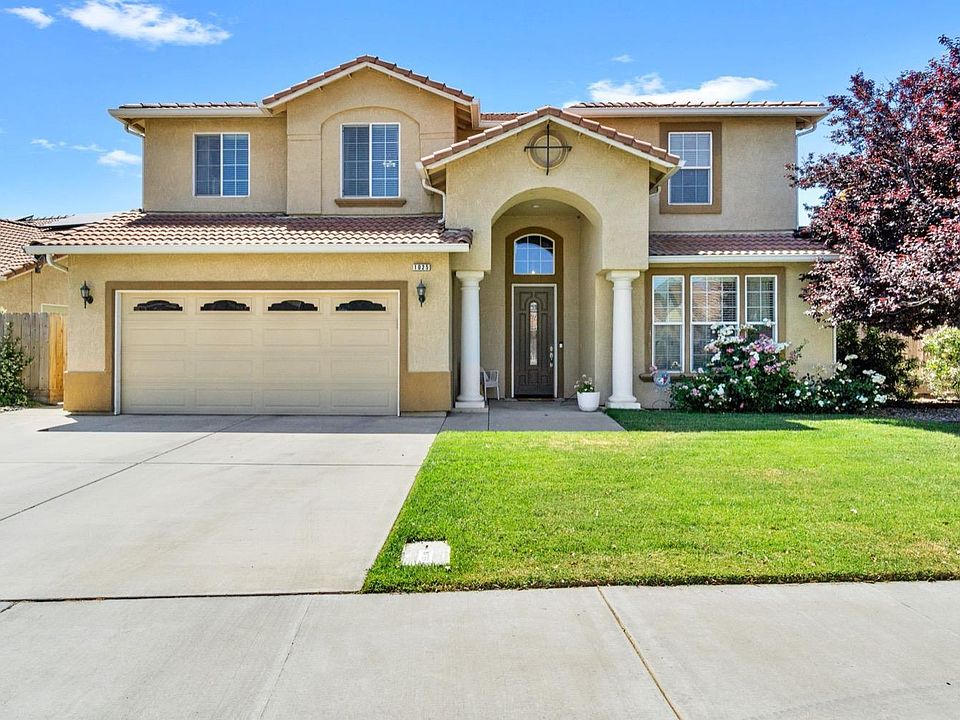 Stunning Golf Course Home! This beautiful four bedroom, three bathroom home is move in ready. Step through the grand entry way and be welcomed into this two story beauty. Offering a living room, formal dining room and family room, there is plenty of space! If you need a kitchen with some extra elbow room, this is it! The expansive counter tops and island offer plenty of space for all your cooking needs. The kitchen opens to the living room and breakfast nook, making entertaining a dream. One full bedroom and bathroom is located on the first floor. Walk up the stair case to built in cabinets, two spacious spare bedrooms and bathroom and an additional loft area that holds endless potential, did I mention the space this place has? Relax in your Owners Suite Oasis. Dual sinks, walk in shower, and a soaking tub. Cool off on those HOT Central Valley nights in the sparkling pool without the worry of the high electric bills, this home has owned solar!The additional concrete space in the backyard has endless potential for a possible outdoor kitchen, spa and more! There is a private entrance through your back gate to enjoy the walking trails through the subdivision. This home has so much waiting for its new owners and is easy access to NAS Lemoore!