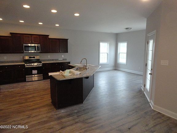 The Palomar, truly a larger family home, with 3 possible living spaces and 4 bedrooms. The 2-story foyer has the split staircase to the second floor, a guest bath and closet. Then you'll enter the wide open area from Family room through to the kitchen and Keeping room. The formal dining room has a coffered ceiling and opens to the kitchen and the entry foyer. Besides the breakfast area there is an informal bar. The covered back porch completes the first floor. Upstairs you'll find a sumptuous Owners Suite with a 13x6 walk in closet, and a deluxe attached bath with a double vanity, soaking tub, separate shower and a throne room. The 3 secondary bedrooms share the hall bath and each of them has a walk in closet. The laundry room is located upstairs, the most convenient location. There are a lot of nice features in this plan: waterproof laminate flooring, ceramic tile in the baths and laundry, carpet w/upgraded pad in the bedrooms and family room. Energy consciousness is important, also. This Builder's homes include an energy efficient heat pump, windows and wall and ceiling insulation values. The natural gas fireplace and water heater are big pluses, too! Stone or brick on the front is an additional cost. $2500 towards closing costs or upgrades is included when you use the designated attorney.