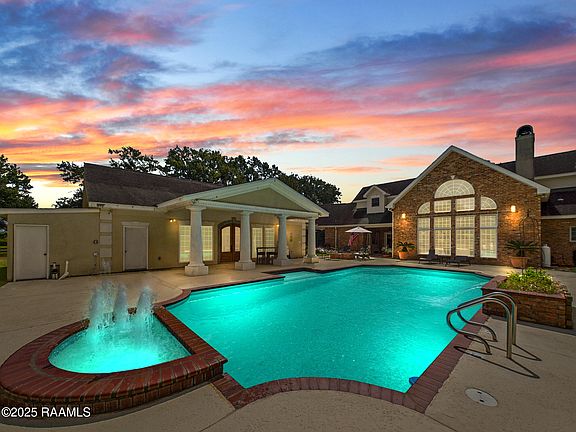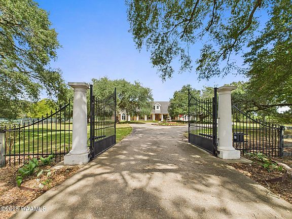 IN-GROUND POOL + ACREAGE! Don't let the 'New Iberia' address fool you - this stunning custom home is located in the desirable Broussard/Cade area, high on the Coteau Ridge and sitting on just under 4 acres of peaceful country beauty. Built to superior standards, this two-story country French home features 2x6 fully sheeted interior and exterior walls, 7-ft custom interior doors, and one-of-a-kind woodwork crafted from 100+ year-old Louisiana cypress milled onsite. The classic layout includes a grand two-story living room, foyer, and balcony. The kitchen was thoughtfully designed with dual work triangles for seamless cooking and prep, plus a large walk-in pantry with its own refrigerator. The oversized primary suite is a true retreat, featuring dual bathrooms and closets. Two new Trane A/C units have just been installed in the main home and guest/pool house. Step outside to your own outdoor paradise - 20x40 gunite pool with two water features and a new pump, large guest house, stocked fishing pond, barn, and gardening shed. A 3-car garage with climate-controlled workshop adds even more functionality. This private escape offers quick access to Youngsville, Broussard, Hwy 90, and is only minutes from ESA, Albertsons, Walmart, and the new First Solar Plant. An additional 1.8-acre tract is also available for purchase. Quality craftsmanship, thoughtful design, and an unbeatable location - don't miss this one-of-a-kind custom home!