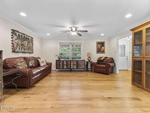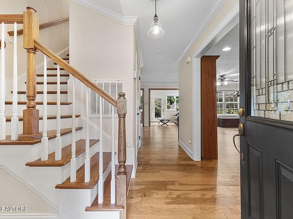 Spacious, Updated & Perfectly Located! This beautifully renovated 2-story home offers 3,074 sq ft of flexible living space on a landscaped corner lot in sought-after Twin Springs. The main level is made for gathering-featuring a formal dining room, chef's kitchen with granite countertops, stainless steel appliances, and custom cabinetry, plus a sun-filled living room, cozy sunroom, and expansive rec room. Upstairs, the oversized primary suite boasts two walk-in closets and a private bath, while two additional bedrooms share a stylishly updated hall bath. Thoughtful updates (2013-2015) include hardwood floors, energy-efficient windows, upgraded lighting, gutter guards, and the addition of a 30x16 workshop-perfect for hobbies, projects, or extra storage. Enjoy peaceful mornings on the covered front porch overlooking lush garden beds or unwind in the sunroom with serene backyard and walking trail views. The oversized 2-car garage offers plenty of space plus the attached workshop. Just minutes from I-40/I-75, Turkey Creek shopping and dining, and major medical centers-this home combines comfort, function, and an unbeatable location.