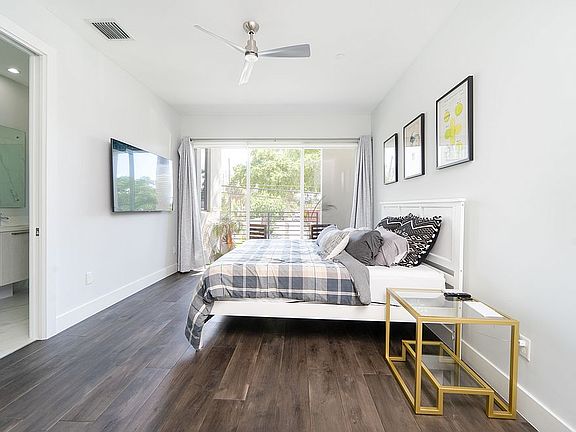 This 3 bed / 2.5 bath modern townhouse provides beautiful living spaces in East Fort Lauderdale, close to the beach, restaurants & shopping. Features include main living space and dine in kitchen on the first floor with lots of natural light, upstairs den can be converted to 3rd bedroom & large primary bedroom w/ walk-in closet, sliding glass doors leading to balcony, primary bath with wet room/double vanities. Quartz countertops, Italian cabinetry, 9.5 ft ceiling heights both levels, LED lighting & impact glass throughout. One car garage w/ gated/assigned parking space and guest parking. Gated yard adjacent to unit. Beautiful pool with space for entertaining. On property, gated dog park. Galleria Lofts community serves as the perfect location for primary or secondary home near the beach.