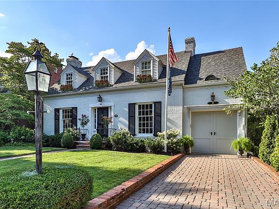 This charming, picturesque home in Warson Woods has been beautifully updated and meticulously maintained, blending timeless elegance with exceptional curb appeal. The inviting brick walk and driveway, custom window boxes, and an attached carriage-style garage, create a warm first impression. The enchanting backyard is a true retreat, featuring an expansive tiered deck, flagstone patio, barn and potting sheds, plus weathered wood arches and benches (all included in the sale) set amidst lush, sculpted gardens ideal for relaxing or entertaining. Inside, hardwood floors, crown and base molding, and graceful archways lend warmth and flow throughout the main level. The spacious, sunlit living room offers built-in bookshelves, a fireplace, and French doors that lead outside. The dining room, highlighted by a Pottery Barn crystal chandelier, opens to the stunning 2020-renovated kitchen/breakfast room with quartz countertops and backsplash, GE Cafe stainless appliances, RH hardware, three skylights, and French doors to the deck. A full bath completes the main level. Upstairs, the primary bedroom includes a serene step-down sitting room with fireplace. Two additional bedrooms and a stylishly updated full bath complete the second floor. The finished lower level offers a cozy family room with fireplace, laundry area, and storage. Fireplaces convey “as-is.”