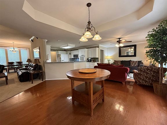 USDA ELIGIBLE, 0% Down payment! SAVINGS TAXES AROUND $1,603 A YEAR! NO MUD-NO PID, low restriction HOA. Spacious-Airy-Open Wraparound floorplan with Multiple areas, perfect for entertaining guest with room to be comfortable! MOVE IN READY - FULLY Renovated elongated home on wide-long lot! Several areas overlooking acreage. Build a large shop! Well maintained Fully Bricked home located in mature area where homes are a good distance from each other & homes sit on acreage, the neighbors customize their home & rarely move! Loose HOA in place with a lot of freedom. 2 Living rooms with one of the living rooms to be used as Flex area, 1 Dining off living, 1 Dining off kitchen, 2 Full bathrooms, 1 Full bath for guests, 1 long enclosed exterior Porch, 1 Closed door Laundry room with sink & direct access to garage. NEW Exotic Quartz countertops & Double oven, Fresh Paint, ALL Bathrooms are newly renovated, Real wood engineered flooring, NEW High-grade Carpet offering a LIFETIME stain-fade-pet stain Resistance! Large Brick Fireplace, Crown Molding, window coverings, & high ceilings. Primary bath is large featuring two separate walk-in closets. Beds on opposite side of home offering jack and Jill bathroom with separate closets & storage. Long driveway with 2 car garage offers perfect setup to build shop off of the driveway. Relax in the large enclosed screened back Porch with 3 access points overlooking the Mature landscaping enriched with Fruit trees & Garden. Maintainable fenced yard with see through fence off enclosed Porch for small pets & easy yard cleanup. Useable land as its relatively flat! Entire home is handicap accessible! LENDER CREDIT TO CLOSE AVAILABLE 1% of LOAN AMOUNT TO BE GIVEN AS CLOSING INCENTIVE.